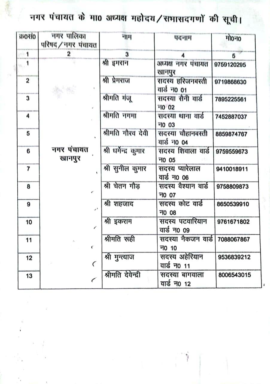 कार्यालय : नगर पंचायत खानपुर, जनपद- बुलन्दशहर